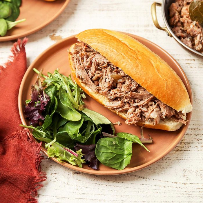 You're probably used to pulled pork coated with barbecue sauce and made into sandwiches. Portuguese pulled pork is a spicy dish often served at our large family functions. Each cook generally adds his or her own touches that reflect their taste and Portuguese heritage. A mixture of beef roast and pork can be used. —Michele Merlino, Exeter, Rhode Island