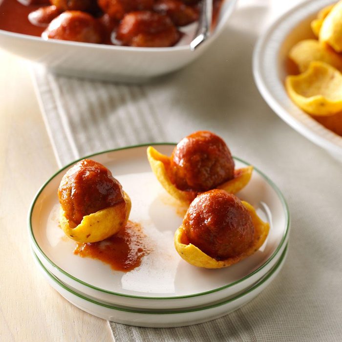 Clever little meatballs deliver the flavor and rich sauce of a traditional tamale in a bite-sized portion. They’re a delightfully different addition to a holiday spread. —Dolores Jaycox, Gretna, Louisiana