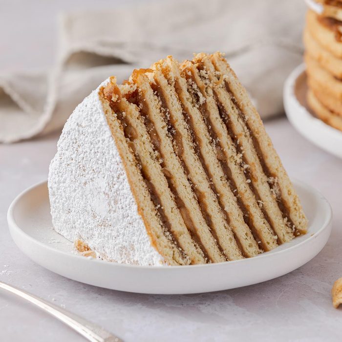 My mom loved to bake this sky-high apple stack cake. Layer the apple goodness two days before serving. Later, a dusting of confectioners' sugar is the only topping you'll need. —LeVa Clement, Jackson, Missouri