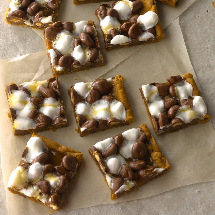 These chunky, chewy squares are a feast for the eyes. Malted milk flavor coats this treat from top to bottom. —Taste of Home Test Kitchen