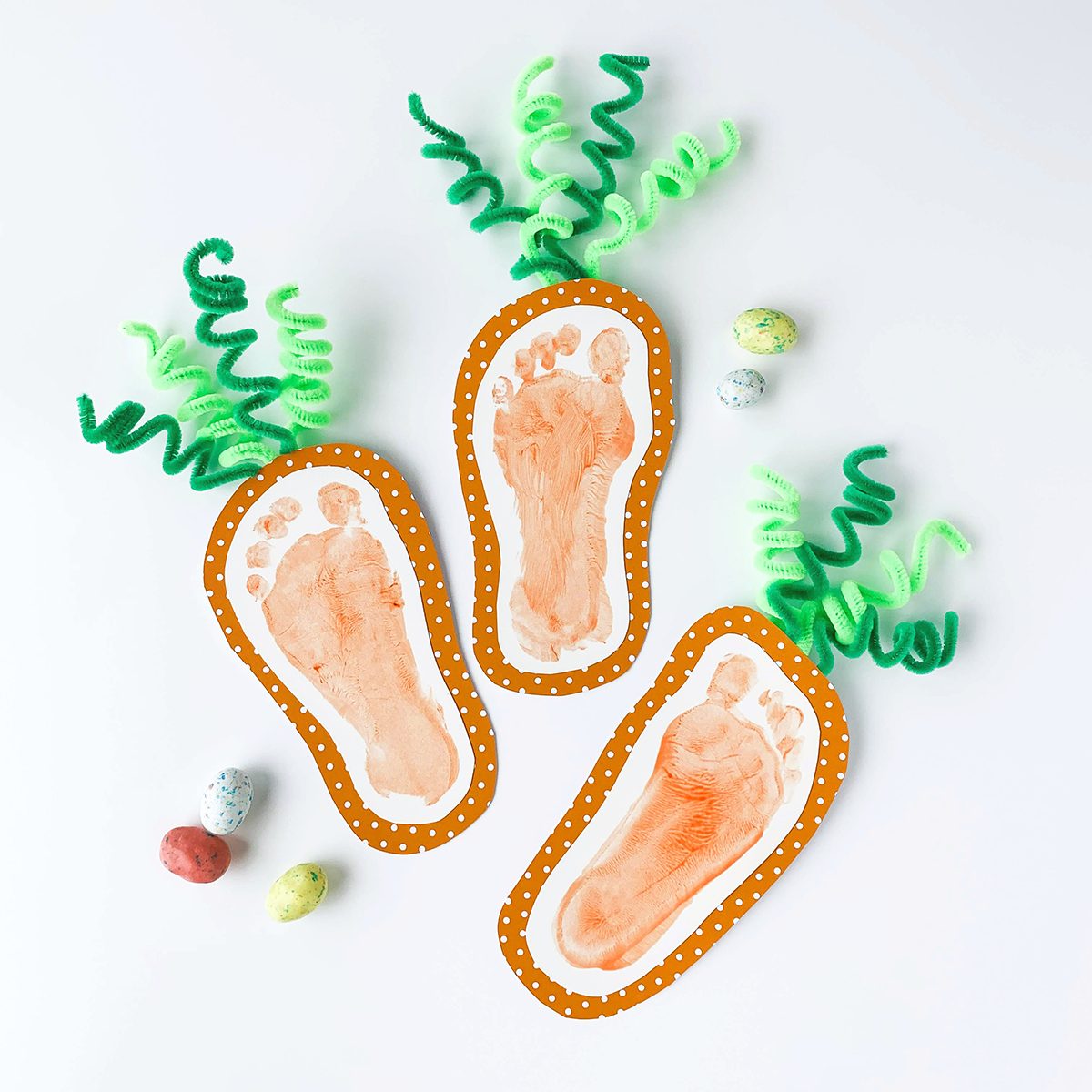 Hippity, hoppity, Easter’s on its way! Pay homage to Peter Cottontail with this cute carrot craft. Let your little ones dip their feet into orange finger paint, then hop their design onto white card stock. Once dry, cut out their paw, err, foot prints and mount them on orange craft paper. Finish with twisted green pipe cleaners that double as carrot stems. Moms are suckers for sweet homemade gifts like these. Discover more ideas for easy Mother’s Day crafts.
