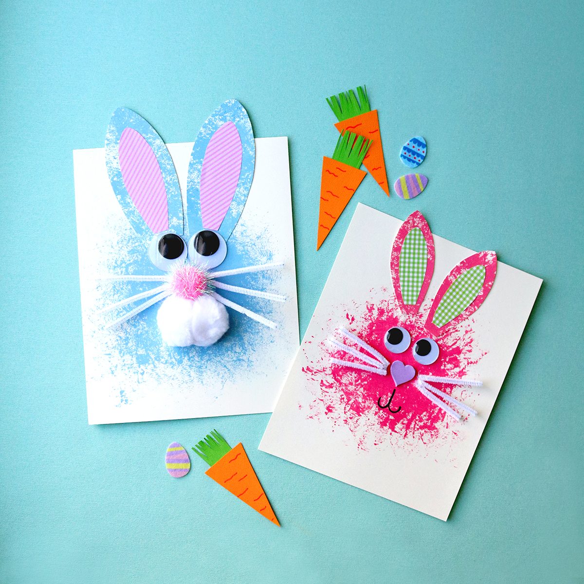 If you have a loofah on its last leg, give it one final hurrah with this adorable bunny craft. Dip the loofah in your favorite acrylic paint, then blot it on a piece of white card stock. While you’re waiting for the paint to dry, cut out bunny ears from patterned card stock, pick out a pair of googly eyes and form whiskers with pipe cleaners. Use a glue stick or hot glue gun to put everything together, and add final touches like a cotton ball mouth or a hand-drawn smile. Try these adorable Easter Bunny-shaped recipes, too.