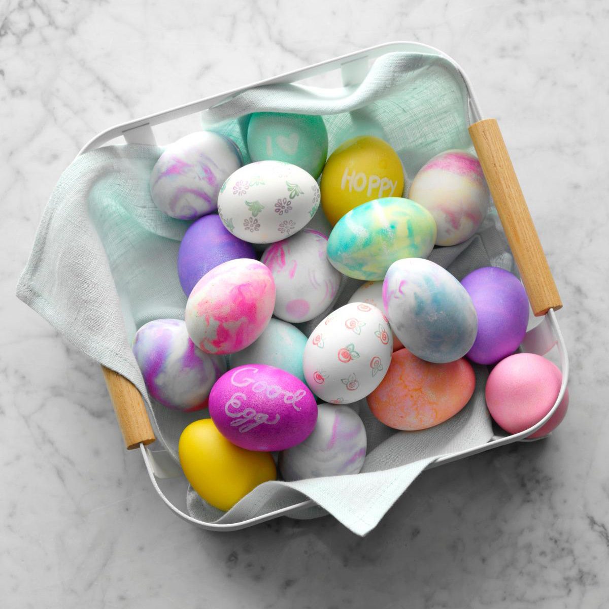 Take egg decorating to a new level. These pretty patterns are made by dipping hard-boiled eggs in tinted whipped cream, using stamps dipped in food dye and printing Easter sayings with a food-safe marker. Get step-by-step instructions for each design in our guide to throwing an Easter egg decorating party (maybe you can plan a big bash for next year).