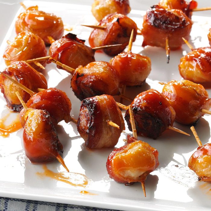 This is the perfect appetizer for most any occasion. The tasty bites are easy to assemble and brush with prepared barbecue sauce. When we have a big cookout, they're always a hit...but they make a nice little "extra" for a family dinner, too. —Gina Roesner, Ashland, Missouri
