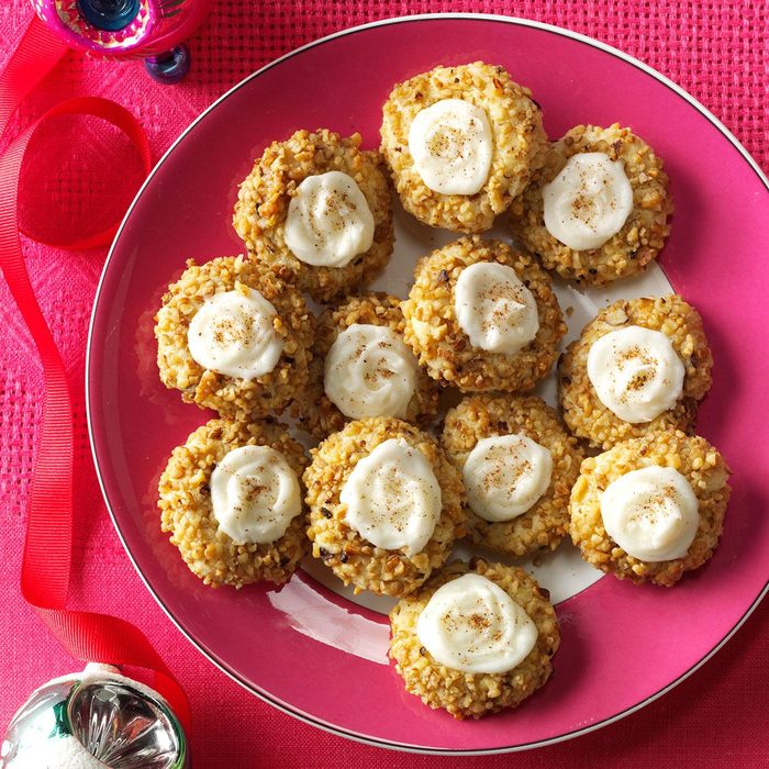 I never cared for jam-filled thumbprints, so I decided to fill them with frosting instead. This makes them easy to ship, which you can’t do with the sticky jam filling. I sent these to my daughter while she was serving in Iraq, and they made the long haul in perfect condition. —Wendy Schlueter, Babbitt, Minnesota