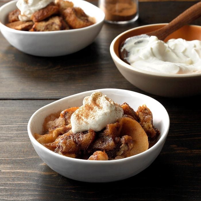 A satisfying dessert like this is a superb treat on a chilly night. It has three layers—apples, cake and sauce—and I like to serve it in a bowl. It's comfort food for the soul. —Ellen Schroeder, Reedsburg, Wisconsin
