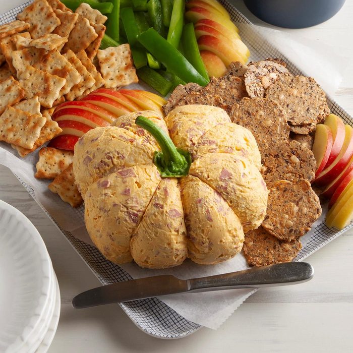 No one will guess that this make-ahead pumpkin cheese ball has pumpkin in it, but that subtle ingredient lends harvest color and added nutrition. —Linnea Rein, Topeka, Kansas