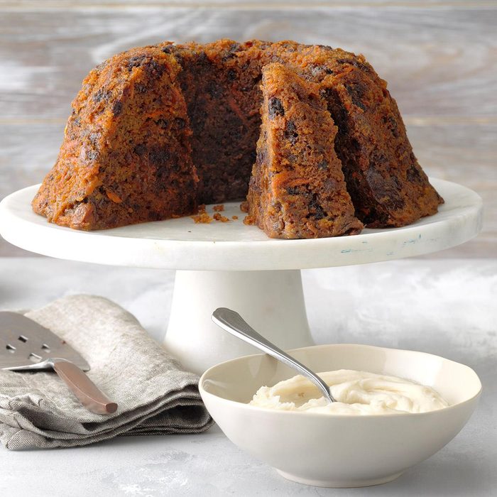 Plum pudding has gone through a big transformation throughout the years. It was created in the 14th century as a savory dish made of beef, mutton, raisins and prunes. It became a dessert in the 16th century and is now made with brown sugar, currants, alcohol and spices. Some recipes use figs, hence the figgy pudding we sing about at Christmas.