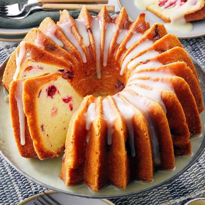 Cranberry orange recipes deliver an iconic fall flavor combination. It works especially well in this elegant Bundt cake topped with a vanilla butter sauce.