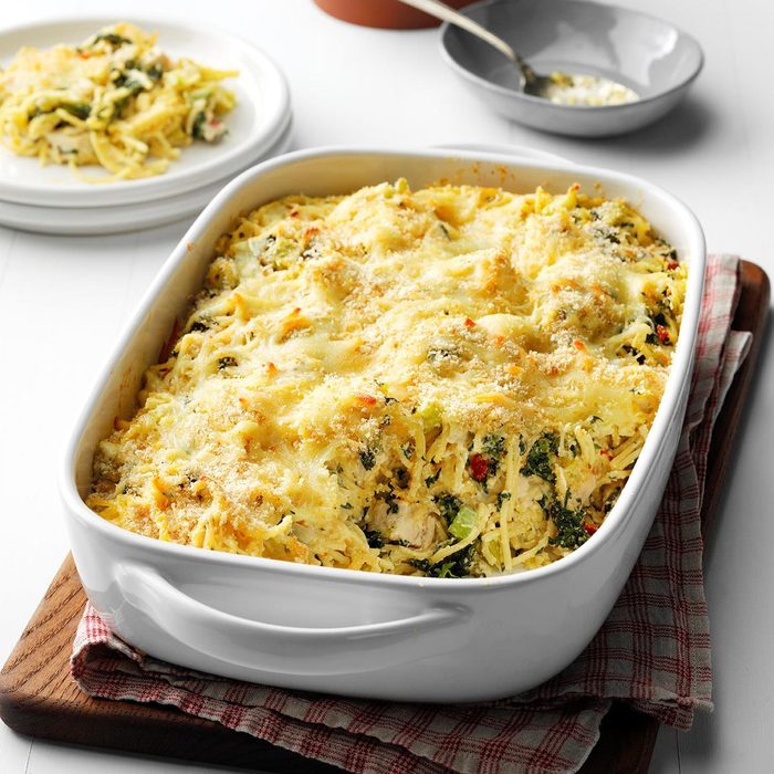This is a fancy version of my grandchildren's favorite baked spaghetti. It feels like such a special dinner, and it's so cozy for winter. —Louise Miller, Westminster, Maryland
