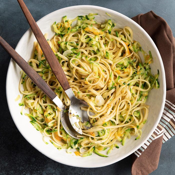 The taste of this rich and creamy zucchini pasta will have people convinced it’s not low-fat, but it is! Garlicky and fresh-flavored, this will be a hit. —Maria Regakis, Saugus, Massachusetts