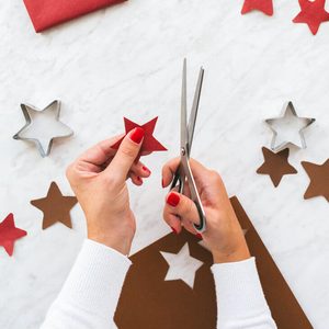 Similar to the wreath craft, you can make your own Christmas garland. String together holiday-shaped cookie cutters (bonus if you use a pretty ribbon) and hang in your kitchen to really get in the spirit of the season. Keep the cookie cutters bare and use twine for a natural look or decorate with sparkles and sequins for a shimmery strand.