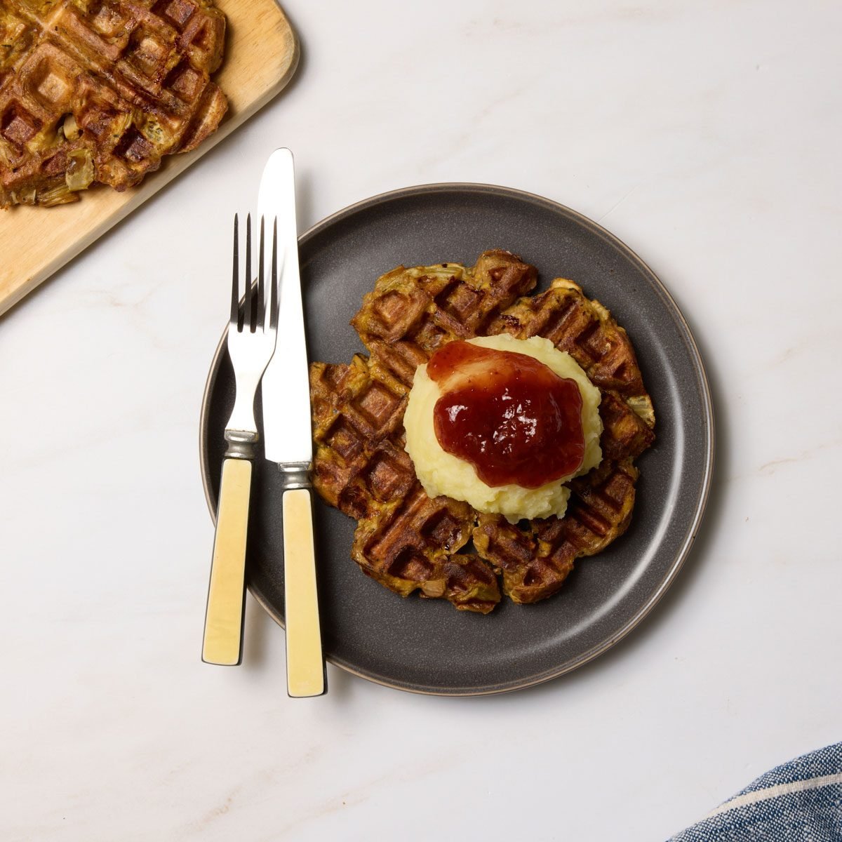 Savory Mustard Chicken and Stuffing Waffles