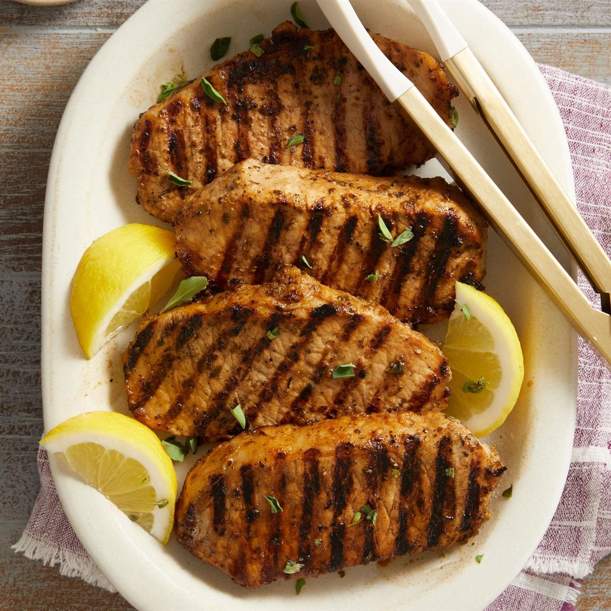 Bright, tangy Greek pork chops are finished on the grill or under the broiler in 10 minutes after an overnight...