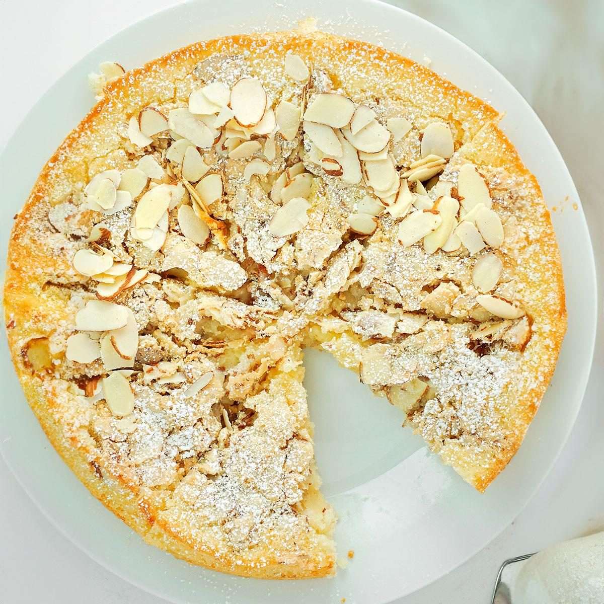 This old-fashioned Swedish visiting cake recipe is infused with almond flavor and has a sweet and crunchy almond topping.
