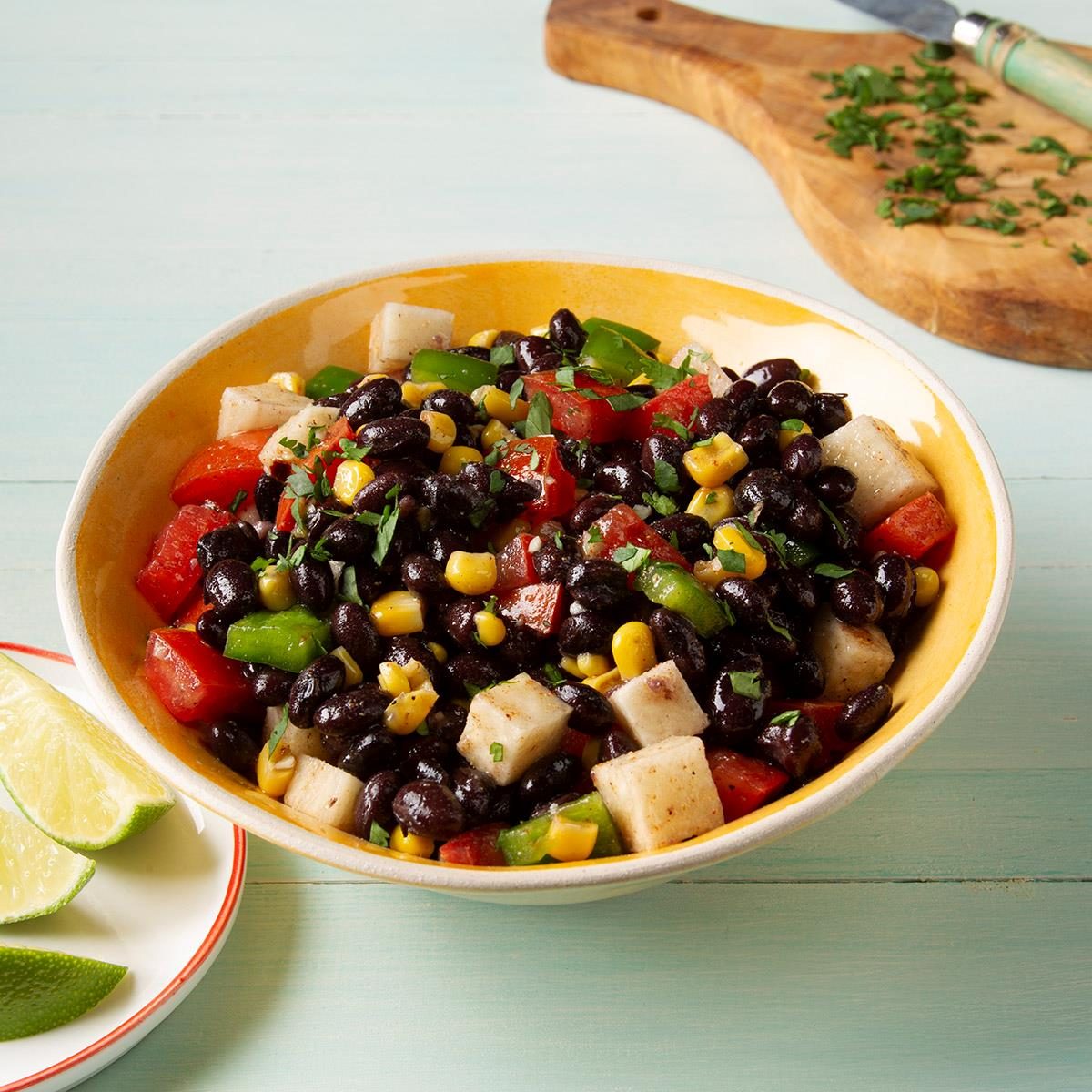 There are so many colorful items in this black bean salad, there is no need for a garnish. The jicama...