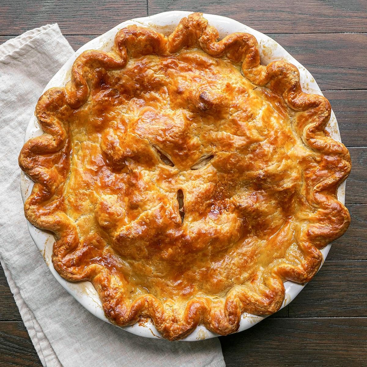 Simmered apple juice thickens the filling of this Golden Delicious apple pie into a glossy, cinnamon-scented layer that slices clean...