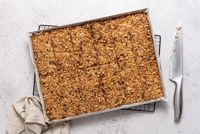 - Quick-cooking oats:Â This heart-healthy grain keeps the bar perfectly chewy and satiating.