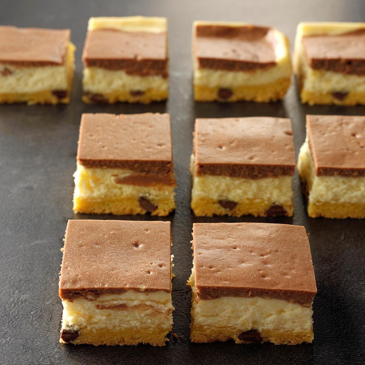 Can't choose between chocolate and vanilla cheesecake? Have both when you make this bar recipe with two distinct layers. —Andrea...