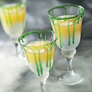 The green goo oozing down the sides of the eerie wine glasses make this fruity beverage perfect for any Halloween...