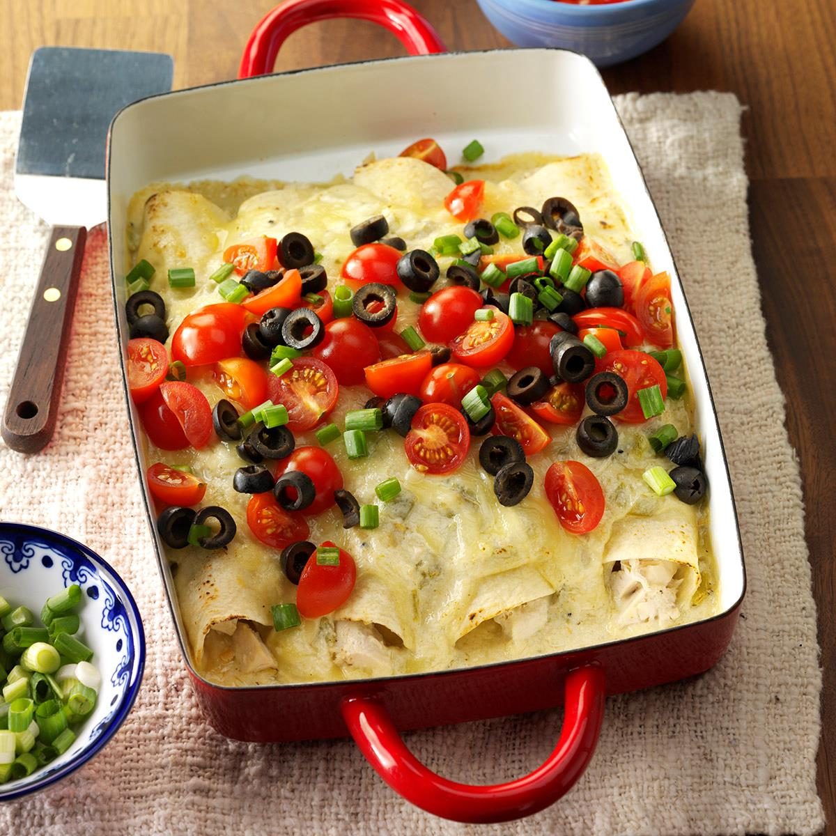 Slathered in a piquant green sauce and baked, chicken and cheese enchiladas verdes are a flavor-packed alternative to tacos.