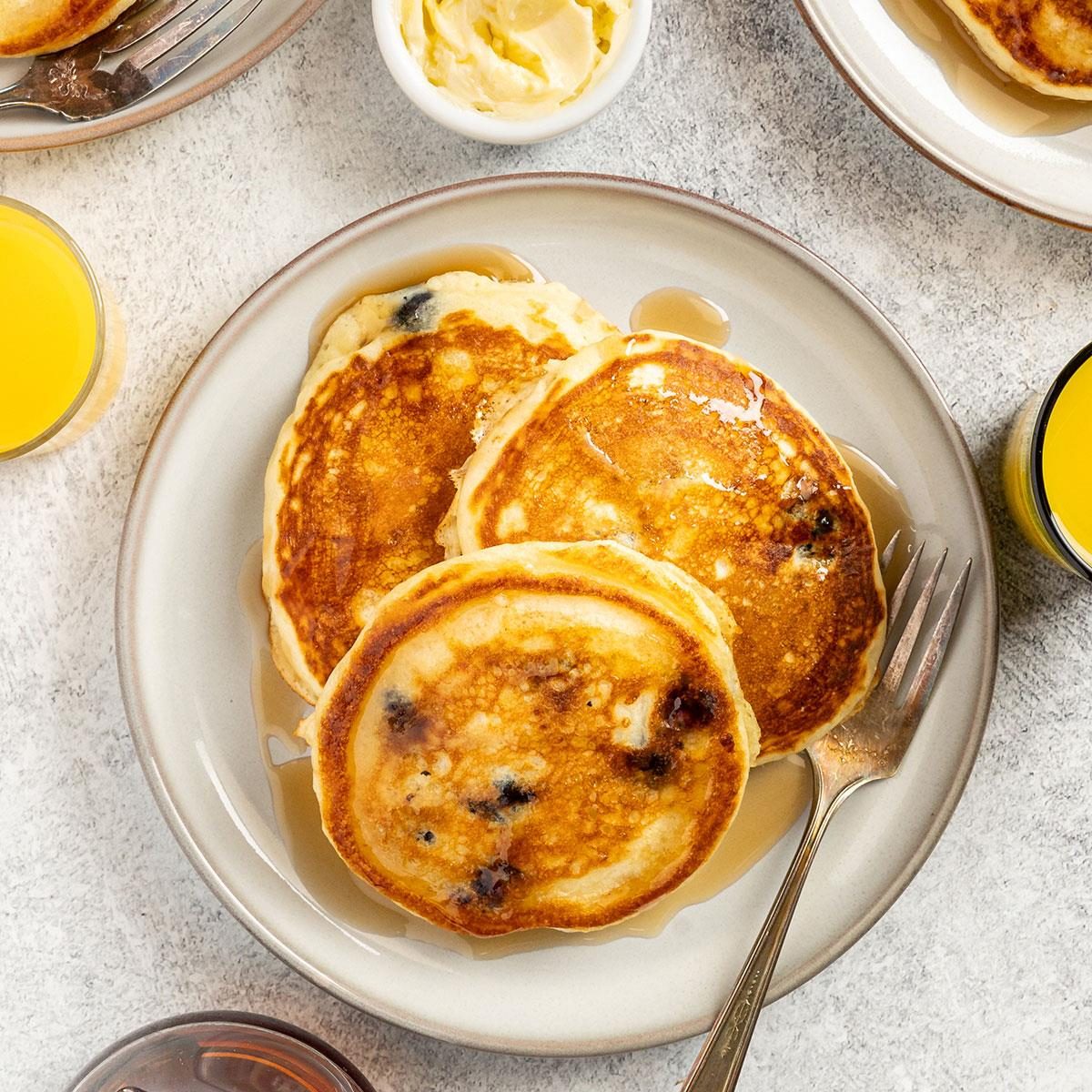 These light and fluffy pancakes are perfectly portioned for breakfast for two. To doll them up, prepare them with blueberries,...
