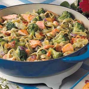 Alfredo sauce and salmon are a palate-pleasing pair in this creamy pasta toss with crisp veggies. We love the flavors,...