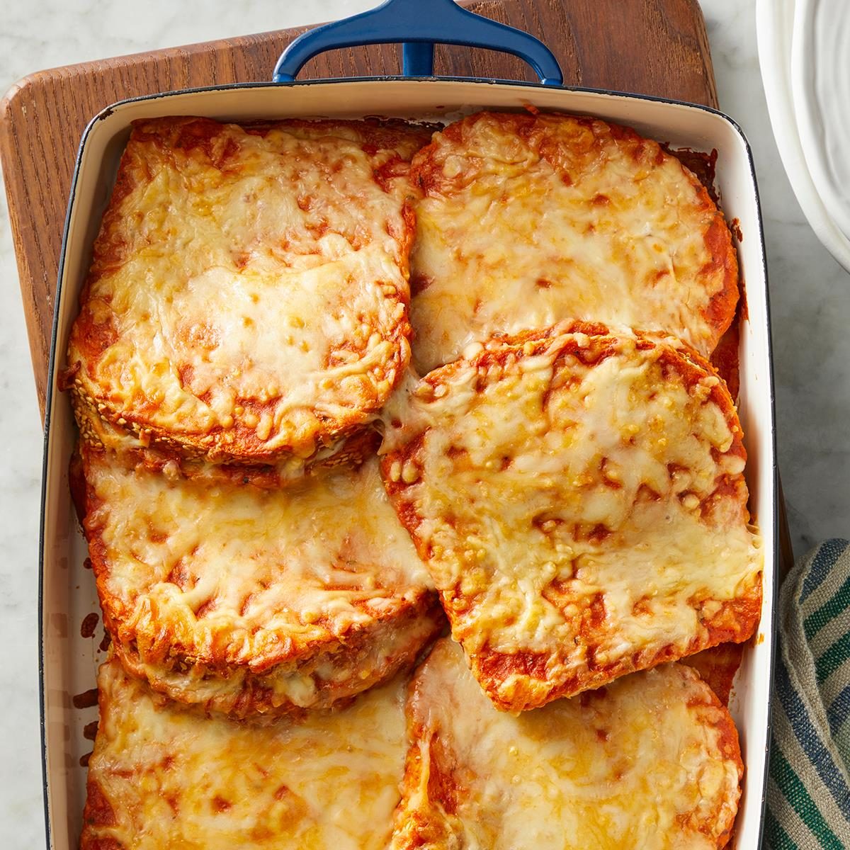 Grilled cheese and tomato soup casserole piles three-cheese sandwiches into a baking dish with a bold tomato paste-based soup that...