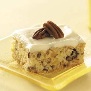 This tall, moist cake makes quite an impression on a dessert table. Pineapple is a nice addition to the cake...
