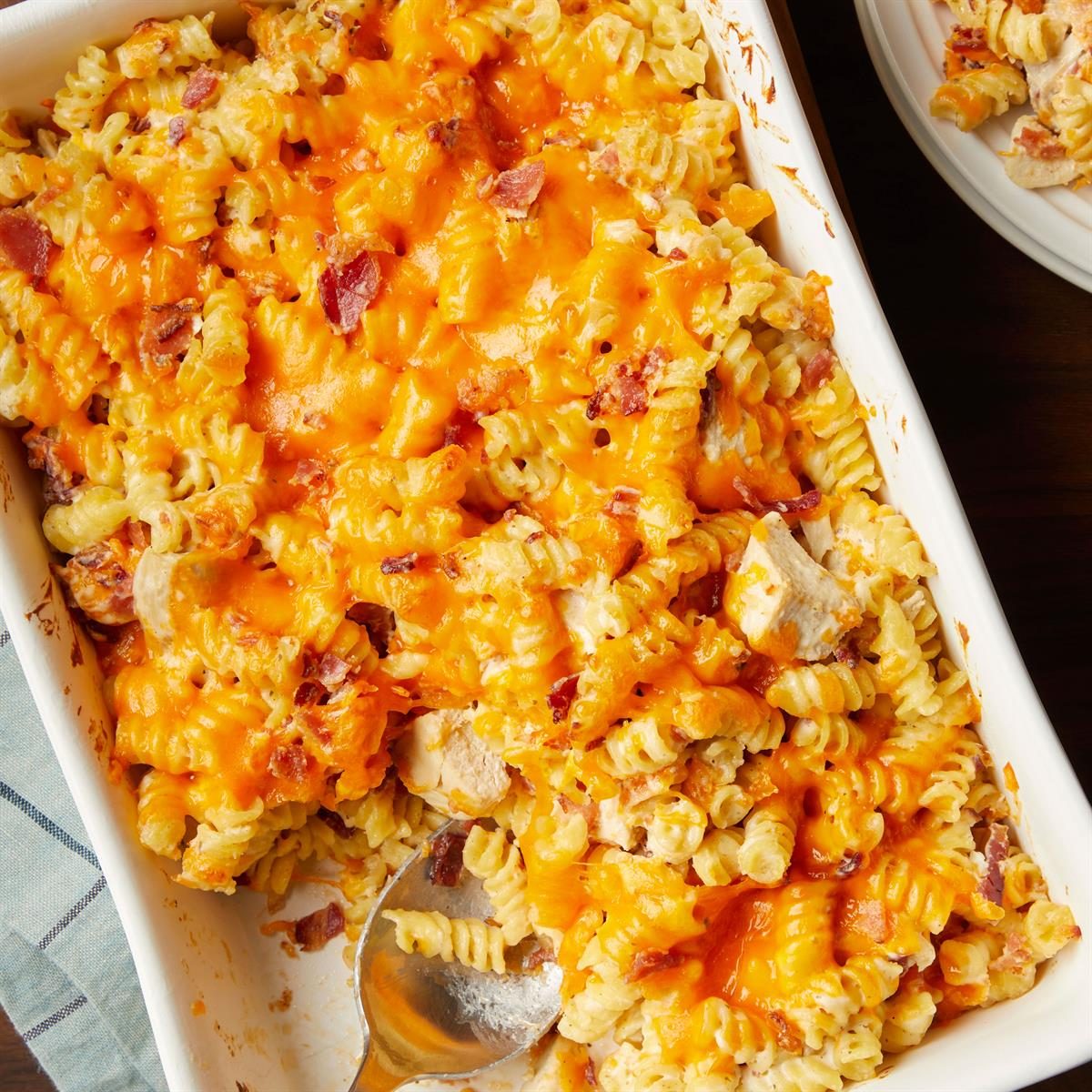 Chicken bacon ranch casserole, made with comforting ingredients like creamy pasta, savory bacon and ranch seasoning, is a slam dunk...
