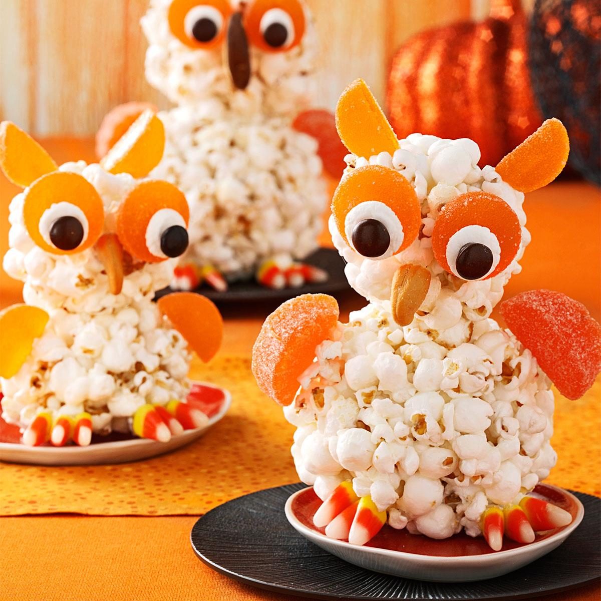 Sweet and chewy popcorn balls are a "hoot" when they're formed into wide-eyed owls perfect for a Halloween party. They...