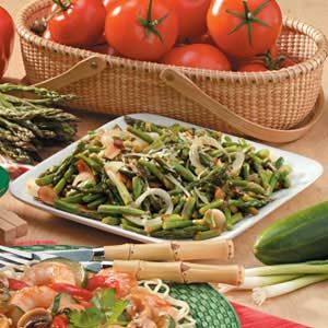 "Here's one of my very favorite recipes for that first early-spring asparagus," writes Marie Hattrup from Sparks, Nevada. "Stir-frying keeps...