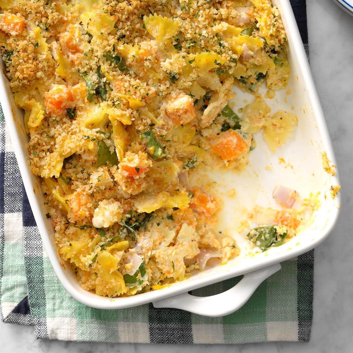 This recipe is made for butternut squash lovers, with pureed squash in the sauce and squash pieces in the casserole...